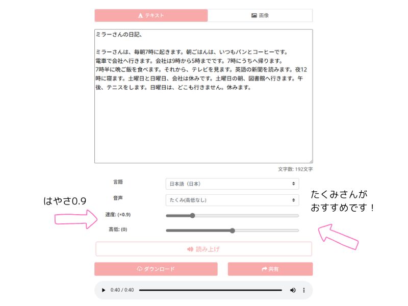 おススメのサイト:日本語 音声読み上げソフト|音読さん