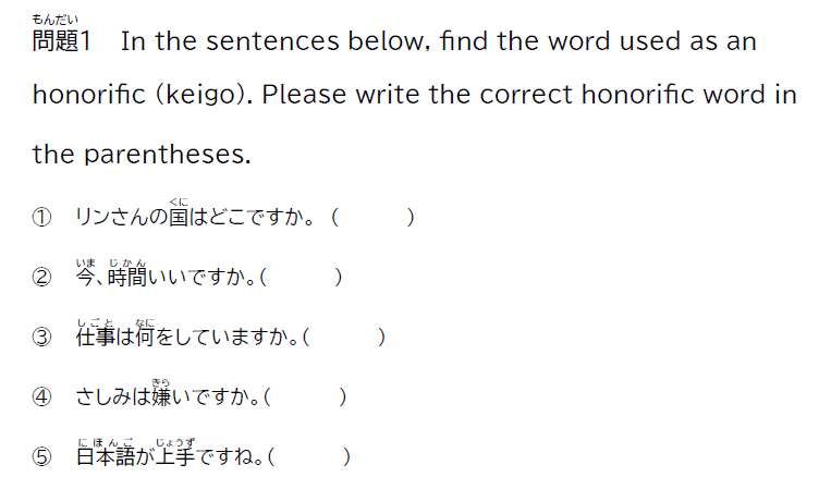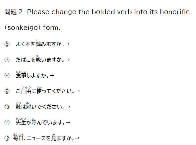 I have prepared practice problems to help intermediate learners review how to use the honorific “o.” You can also print these out.