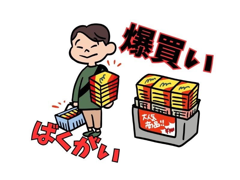- 爆買(ばくがい):一度(いちど)にたくさんのものを買うこと。