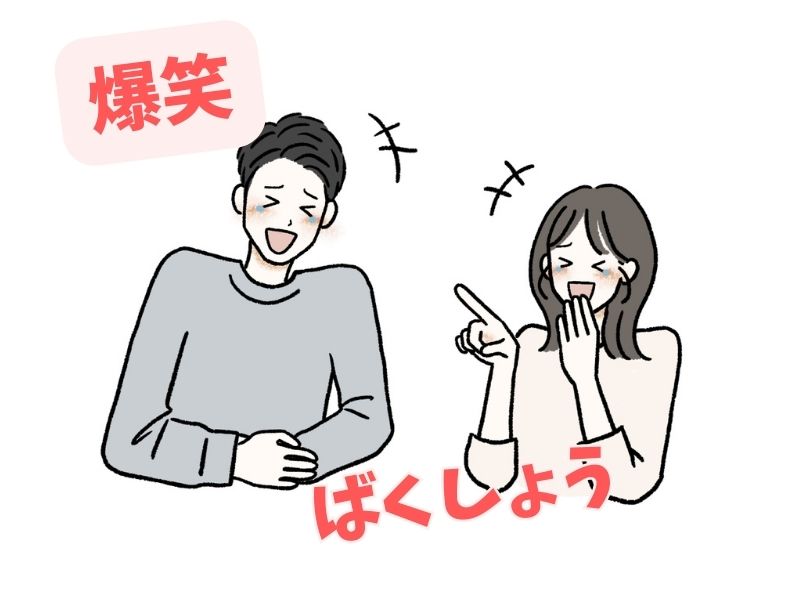 - 爆笑(ばくしょう):すごく大きな声(こえ)で笑うこと。