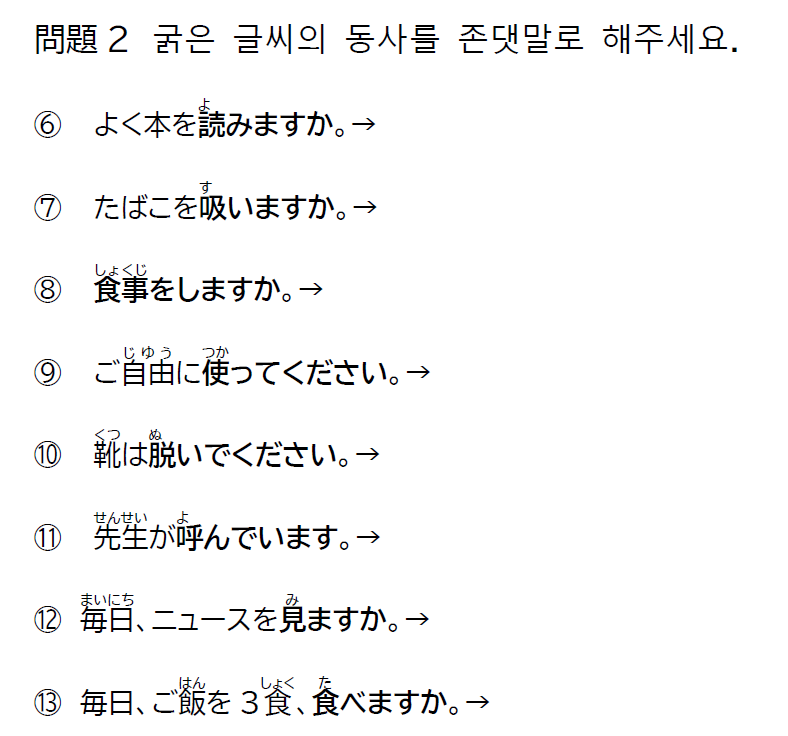 메모 ①: 「오+마스형+니 나리마스」와 「오+마스형+나사이마스」는 둘 다 같은 의미입니다. 3그룹 동사에는 「오+마스형+나사이마스」를 사용하는 것이 더 쉽습니다.